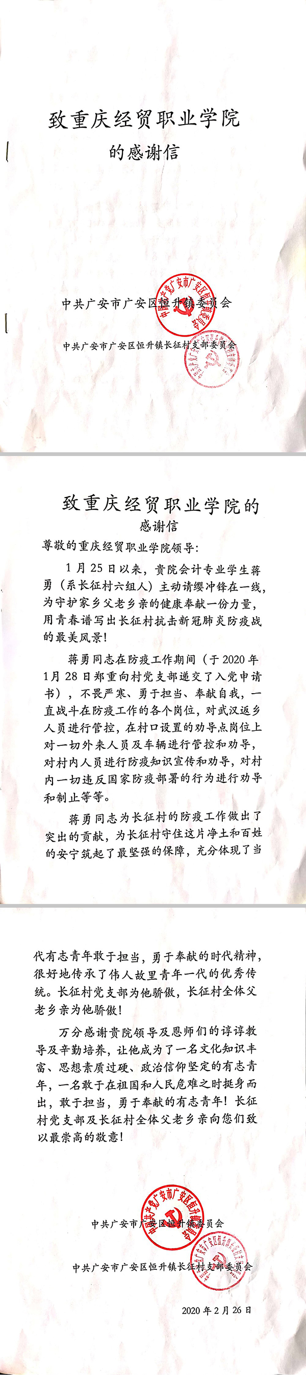 抗击疫情 我在行动丨来信转发—中共广安市广安区恒升镇委员会致beat365官方网站的感谢信
