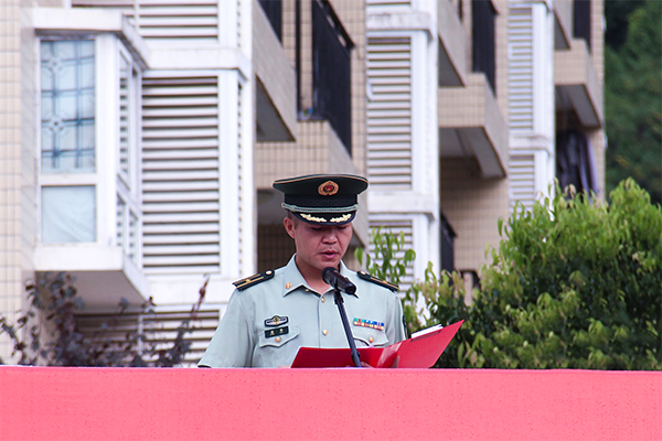随后,武警执勤第五支队副参谋长荣华讲话强调,军训是学校教育的特殊形式,是全面提升学生国防意识和磨炼学生意志的“第一课”,全体参训师生一定要重视军训。同时,他代表全体承训教官承诺在训练中坚决做到认真负责、科学规划,圆满完成此次军训任务。