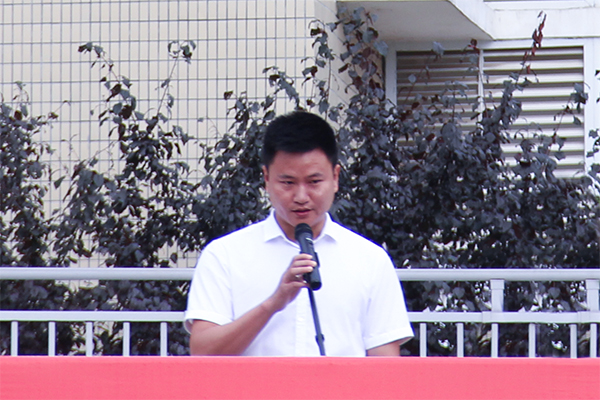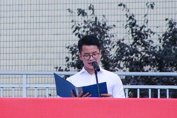 学生代表商务学院郭明武发言,他说到,大学军训意义重大,希望学弟学妹们在参训过程中做到严明纪律、听从指挥、刻苦训练和顽强拼搏。