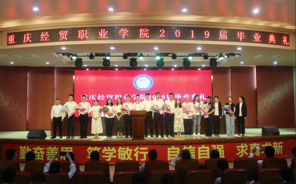 陈奇良副院长宣读《中共重庆市委教育工委重庆市教育委员会关于2019年普通高等优秀毕业研究生和优秀大学毕业生的通报》及《beat365官方网站关于表彰2019年优秀大学毕业生的决定》,学院领导向优秀毕业生代表颁发荣誉证书。