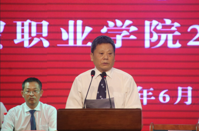 教师代表卢凯林老师发言,他对毕业生顺利毕业表示热烈的祝贺,同时也希望同学们能坚守自己的梦想,谨记“自信与创新使人生更有价值”的校训,以百炼成钢的坚韧和灵活变通的智慧去直面自己的人生,创造辉煌人生,做社会主义合格建设和可靠接班人。