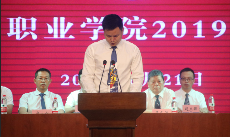 6月21日上午,beat365官网2019届毕业典礼在博学厅隆重举行。学院党委书记、院长王久渊,副院长陈奇良,院长助理庞永红,各行政部门负责人,各二级学院院长,教职工、在校生代表以及全体毕业生参加典礼。典礼由院长助理杨诚主持。