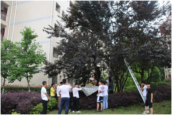 采摘过程中,师生团结协作,有的爬树采摘,有的树下接 “李”,有的负责装盘。在经过近一个小时的采摘,劳动成果收获丰硕。