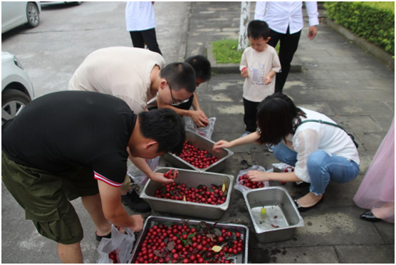采摘来的李子统一收集,现场分发给全院同学品尝,同学们将李子分享给自己的同学、老师以及大三即将毕业的学长学姐,与大家共享采摘的喜悦,也让大家能品尝到学校李子的甜蜜。