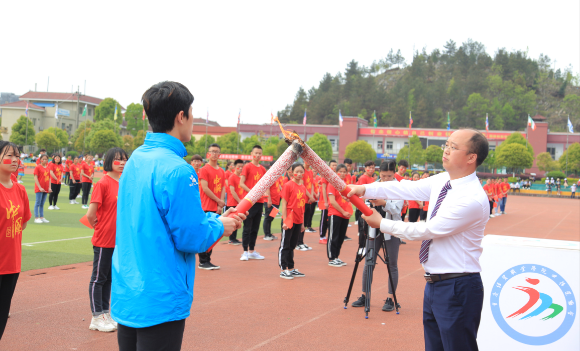 4月18日,学院第六届田径运动会开幕式在田径运动场举行,董事会领导、学院领导、各部门、二级学院主要负责人以及来自各二级学院的1000余名运动员和近2000名同学参加开幕式。黔江团区委副书记石军莅临现场指导学院运动会。开幕式由学院院长助理庞永红主持。