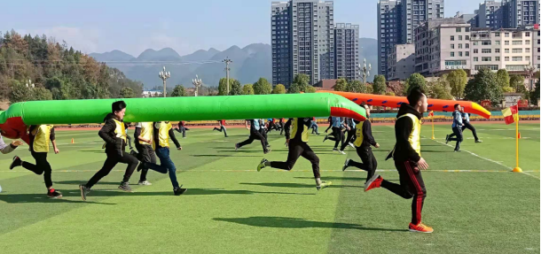 此次运动会共设有“快乐毛毛虫”、“猪八戒背媳妇”、“旱地龙舟”、“拔河”、“袋鼠跳”、“50米迎面接力赛”六个项目。每一个比赛项目都充满了趣味性、挑战性,这不单是智力与体力的角逐,更是团结与协作的比拼。