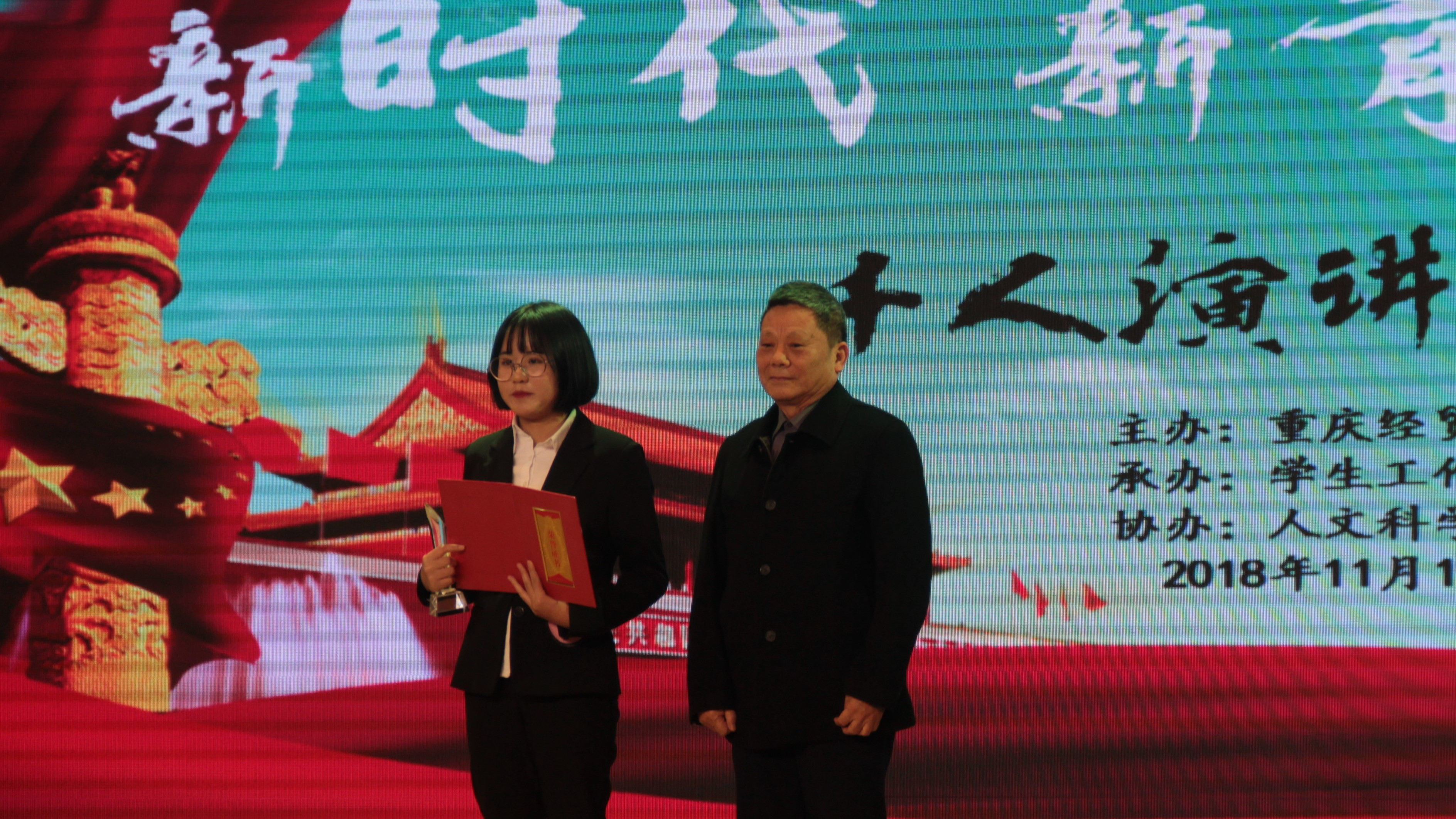 选手演讲结束后岳喜克部长详细评点了每位选手的细节表现,在语态、形态、情态上的优缺点,并强调演讲脱稿的重要性,同时还介绍了何为演讲,以及演讲应该具备的表现形式和演讲与工作报告、朗诵、背诵的区别等,令同学们深受启发。姚樊樊部长在总结中表示,12名参赛选手在比赛中表现落落大方,语言激情澎湃,演讲声情并茂,她看到了经贸学子的朝气。“新时代新青年新作为”不仅贯彻了十九大以及全国教育大会会议精神,更是当代青年大学生成长成才的舞台,要用实际行动去实现中华民族伟大复兴的中国梦。