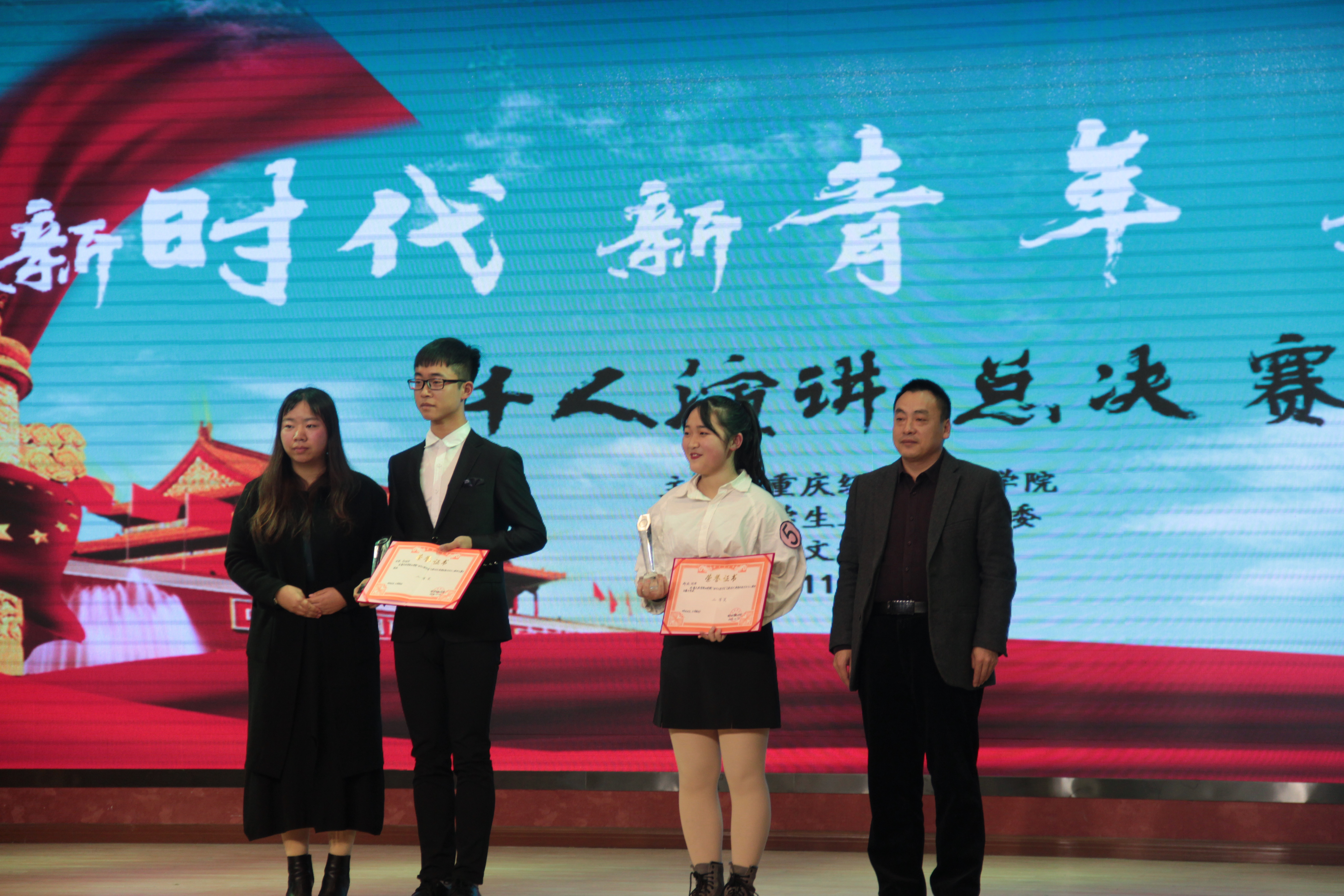 此次比赛经过两个月的初赛严格选拔,十二名参赛选手最终站在“新时代、新青年、新作为”决赛的演讲台上。选手们在演讲中紧紧围绕习近平新时代中国特色社会主义思想,结合自己的身边事,分别从不同角度阐述如何在新时代,树立正确的三观,奋发有为、锐意进取,展现了当代青年人的朝气蓬勃。他们富有感染力的精彩演说打动了评委和在场的观众,现响起场阵阵掌声。经过激烈角逐王玉莹以评分第一获得一等奖,郑垚、杨海宇二人紧随其后获得二等奖,邓智慧、吴琳、余忠铃三人斩获三等奖。