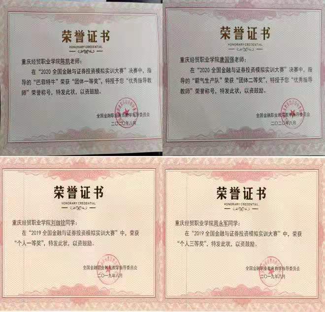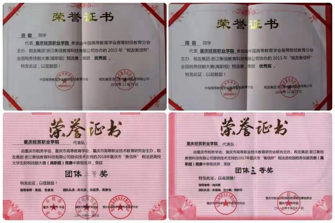学院坚持“以赛促学、以赛促教”的新型人才培养模式,注重提升学生的实践动手能力,夯实理论基础知识。近年来,师生积极参加国市各类专业技能竞赛,在激发学生学习兴趣的同时,塑造了良好的学习氛围,先后在“巴渝工匠杯”税务技能比赛、会计技能比赛、全国证券模拟技能大赛等各类专业竞赛中取得了优异的成绩。