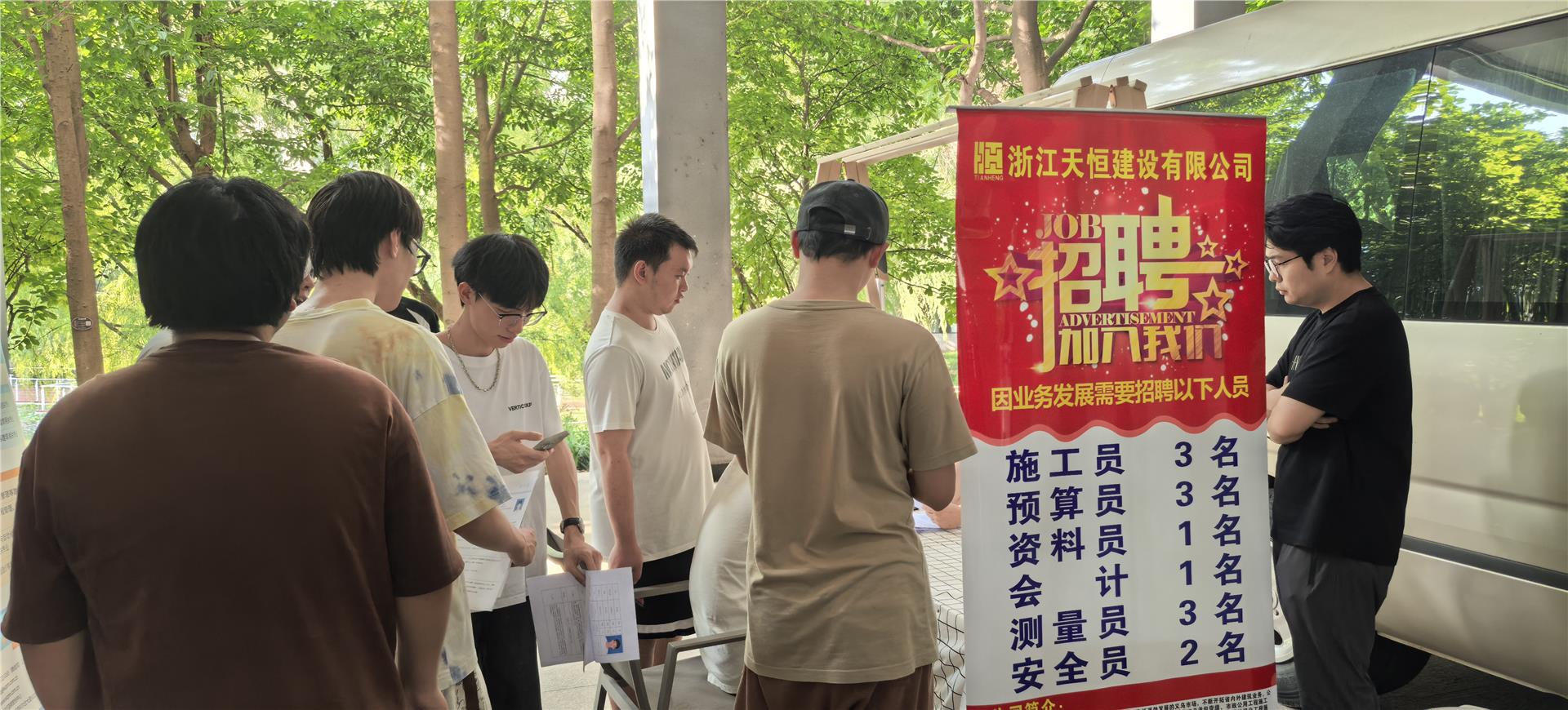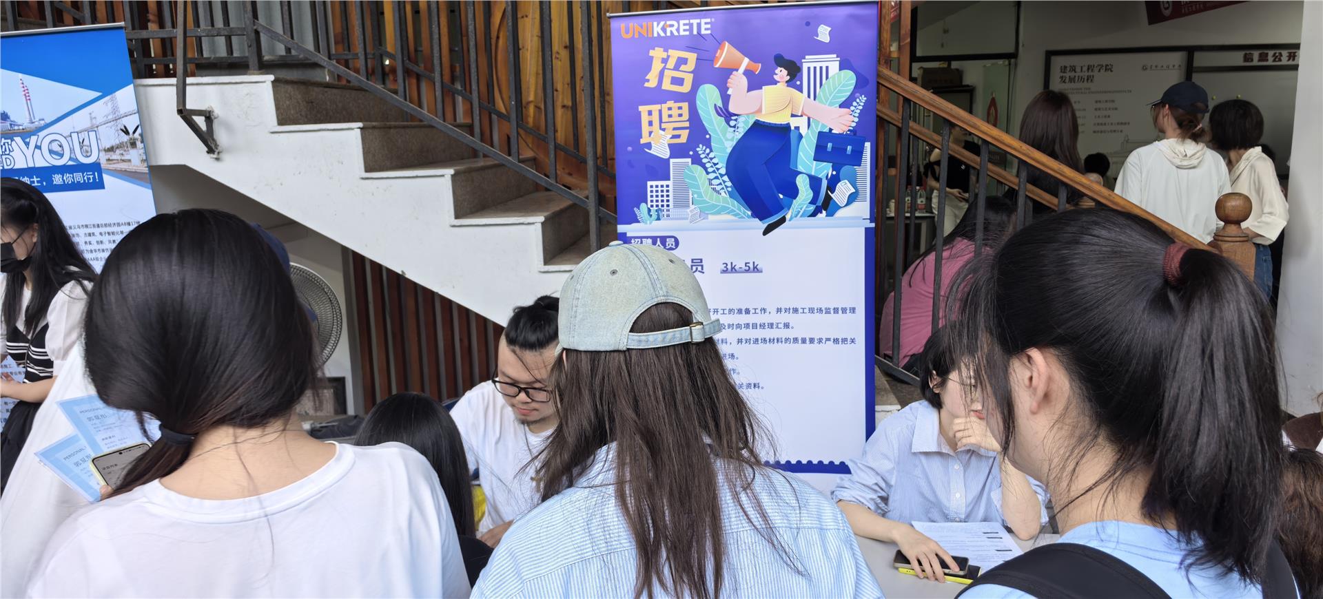 共有五洲工程顾问集团有限公司、中天建设集团有限公司第一建设公司等26家企业参与线下的实习岗位双选会,为学生提供了多样化的岗位选择。企业代表介绍了企业的基本情况、岗位需求、职业发展路径以及薪资待遇等相关信息,学生们积极与企业代表交流,咨询感兴趣的问题,主动投递简历。现场气氛活跃,学生们纷纷表达了对即将踏上实习岗位的期待和信心。