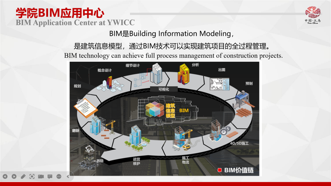 2023年12月25日下午,BIM应用中心相关老师在马来西亚拉曼理工大学开展了“浙中BIM应用及智能建造”主题讲座,拉曼理工大学师生100余人参加了此次讲座。讲座主要介绍了 BIM应用中心成立以来的相关成果。BIM应用中心,是在义乌市住房和城乡建设局的指导下,由beat365亚洲版官网和义乌市建筑行业协会联合成立,主要开展基于BIM技术全生命周期的应用研究,推进义乌市建筑行业转型升级,促进地方经济发展。