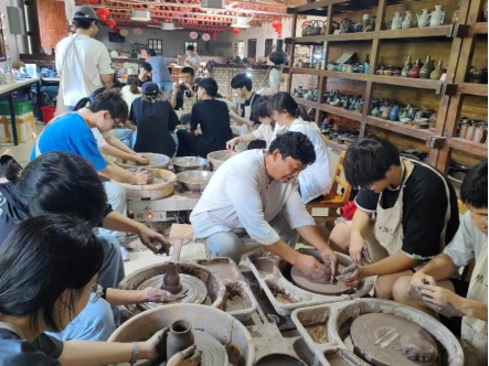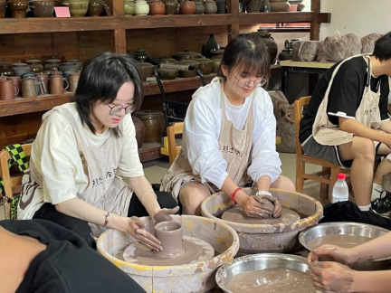 为丰富学生课余生活,提高学生审美和实践创造能力,6月10日,beat365亚洲版官网20余名学生来到缸窑村开展陶艺拉坯体验。学院邀请俞永民老师讲授陶艺知识,让同学们在实践中感受陶艺的美和创造的快乐,此次活动是学校第七期发展性资助项目之一。