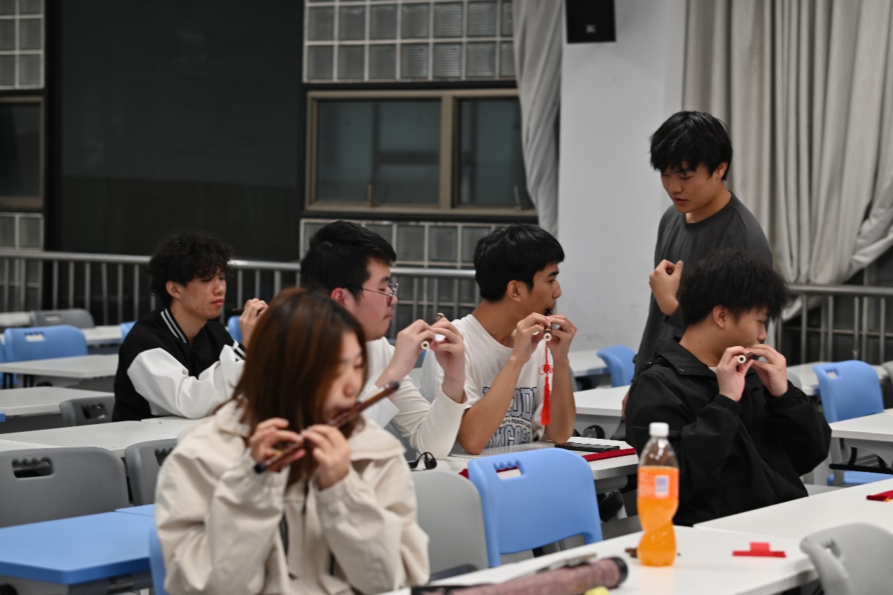 活动当天,学院特意邀请了已经学习了9年笛子吹奏的学生进行专业指导。活动过程中,采用了“一对一”互动教学的方式,让每位参与的同学都能在轻松愉悦的氛围中快速上手,体验笛子带来的乐趣。同学们在耐心地指导下,从最初的生疏到后来的流畅演奏,脸上洋溢着成就感与喜悦之情。