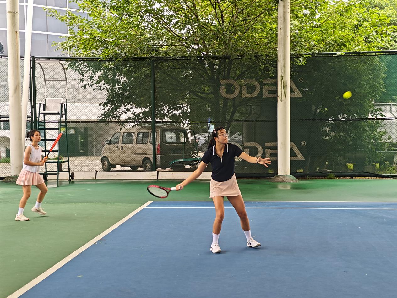 捐赠仪式后,“思成杯”校友网球赛正式拉开帷幕。参赛选手涵盖在校师生、毕业校友及企业代表,年龄跨度从“90后”到“00后”。比赛通过抽签组队实现“新老搭配”,既展现竞技激情,又传递传承精神。赛场上,校友与师生默契配合,挥拍间尽显活力;赛场外,久别重逢的校友们畅聊往昔校园岁月,分享职业成长感悟。