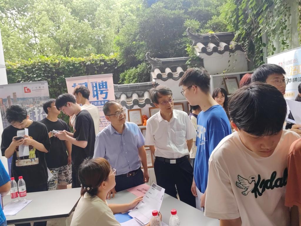 双选会期间,党委书记李昌祖先后来到广宏建设集团有限公司、浙江汉宇设计有限公司、春晗环境建设股份有限公司、浙江锦辉建设有限公司等招聘展位前,与企业招聘代表进行了亲切交流,了解用人单位招聘计划、岗位要求和现场招聘情况,积极向用人单位推介学生。