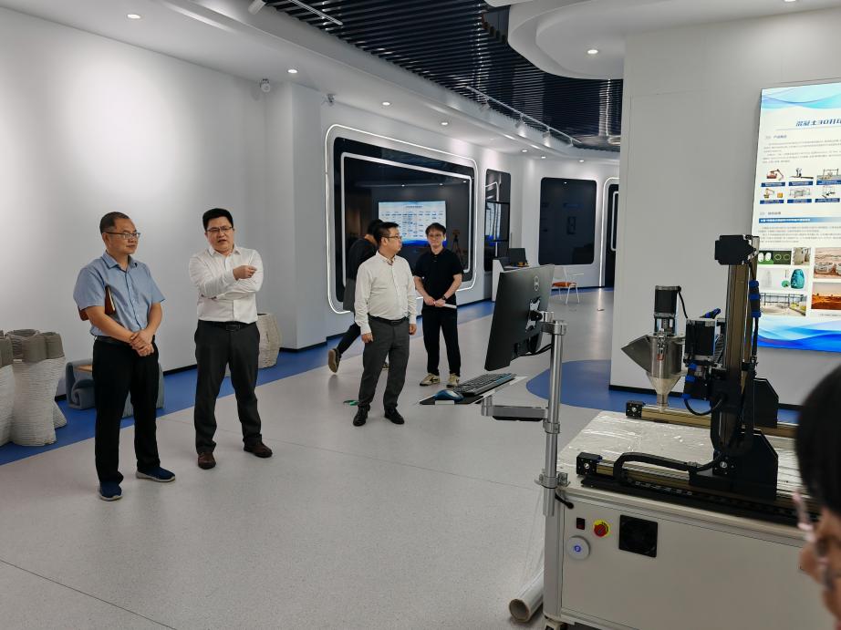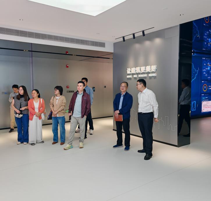 交流活动中,双方一同参观了浙里建·未来建造中心,中心展示了智慧施工和智慧运维的先进成果,为双方的交流提供了丰富的实例。在随后的座谈会中,杭州建研科技有限公司郑夏翊总经理详细的描绘了智慧建造的未来建造科技蓝图。从最初的探索尝试到如今构建起的智慧建造成熟体系,这一过程中积累的丰富经验无疑给beat365亚洲版官网提供了极具价值的参考与借鉴。双方就土木工程的办学理念、方法及其面临的挑战与机遇展开的深入探讨,无疑为这一传统学科注入了新的活力与视角。通过这次富有成效的科技对接活动,大家达成了广泛共识:土木工程的未来在于其能否成功转型升级为智慧建造。